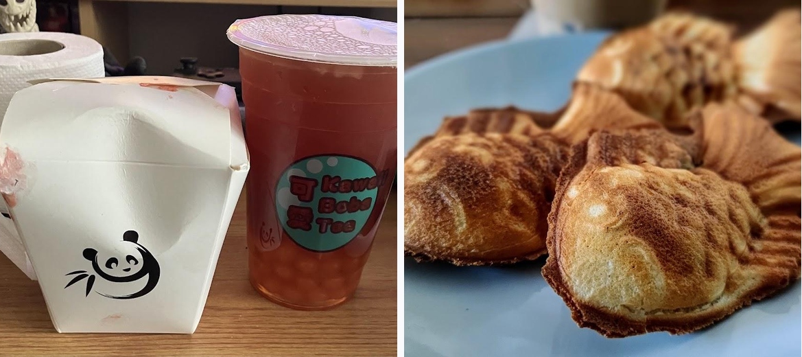 Yes, you can dine in or take away delicious snacks alongside your bubble tea. The food menu includes bubble waffles, croffles, and more.